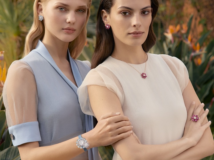 The Fleurs d’Hawaï collection is inspired by the hues of a vibrant garden and features a color palette bursting with vitality. Like freshly blooming flowers, the jewelry and watch creations combine petals in fine stones, diamond pistils, and gold foliage to form sparkling compositions. Evoking lush, sun-drenched nature, each of the pieces reveals a generously proportioned corolla.
